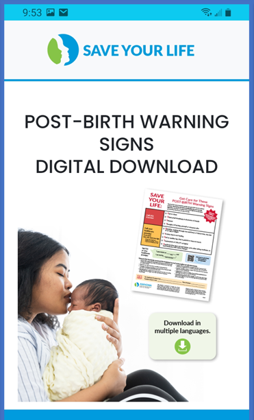 Download the POST-BIRTH Warning Signs Mobile Device Instructions or watch the instructional video below: